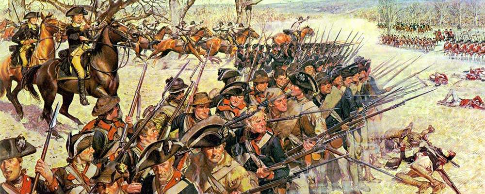 Battles: Battle of Trenton (1776), Battle of Princeton (1777), Battle of Brandywine (1777), Battle of Germantown (1777), Battle of Monmouth (1778), and the Mutiny of 1781