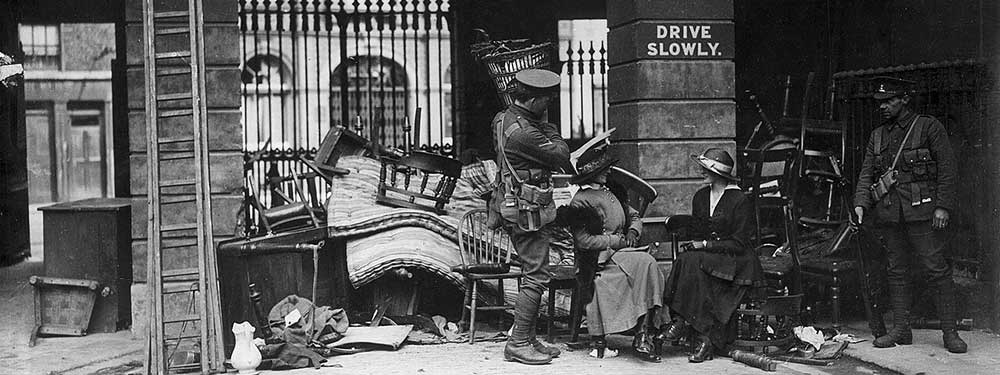 Public perception of the Rising was colored by civilian loss. Thousands mourned their dead as citizens struggled with the aftermath. Dublin was quiet, but unrestful. Shops were looted, and food prices soared as the city began to rebuild. Anti-rebel sentiment seemed common, and it was easy to blame the rebels for the destruction in Dublin city. Civilians began to write off the rebellion as senseless. One citizen remembered that at the time Dublin city felt “sacrificed for a cause that the majority of the people did not understand”.