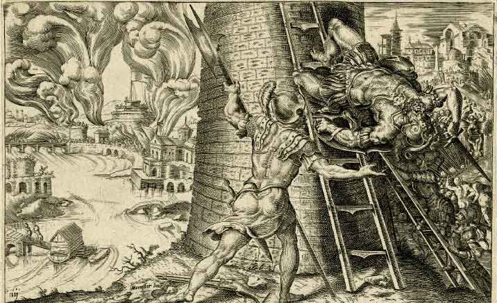 Upon the imperial army’s approach, Charles de Bourbon took a decisive step to enforce discipline upon its ranks. When the assault began on the morning of May 6, Bourbon rode at the head of the initial wave of attackers. Covering his armor with a white cloak to make himself recognizable to his men, the constable moved closer to the walls under the cover of his men’s fire. But Bourbon was struck down almost immediately upon the start of the assault.