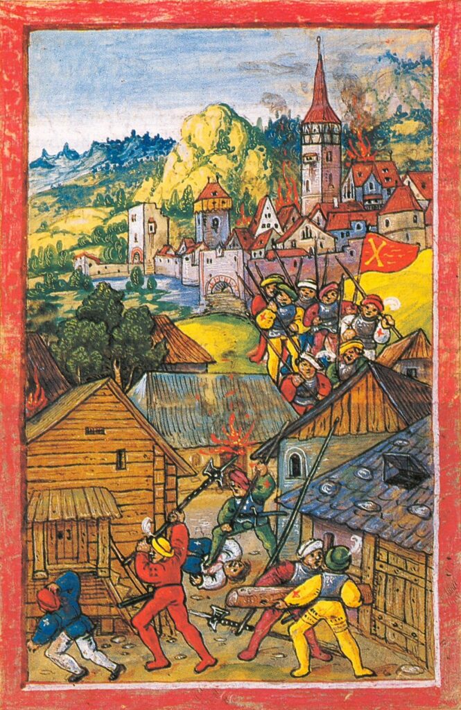 Under heavy rain and gunfire, soldiers scaled ladders, smashed weakened gates, and poured through gaps in the walls near the Janiculum. Soldiers exploited the initial breaches of Rome’s walls, and within minutes, order and discipline were lost. The city was immediately consumed by violence. The initial hours of the sack have been described in later historical and literary works as a “whirlwind of iron and fire”.